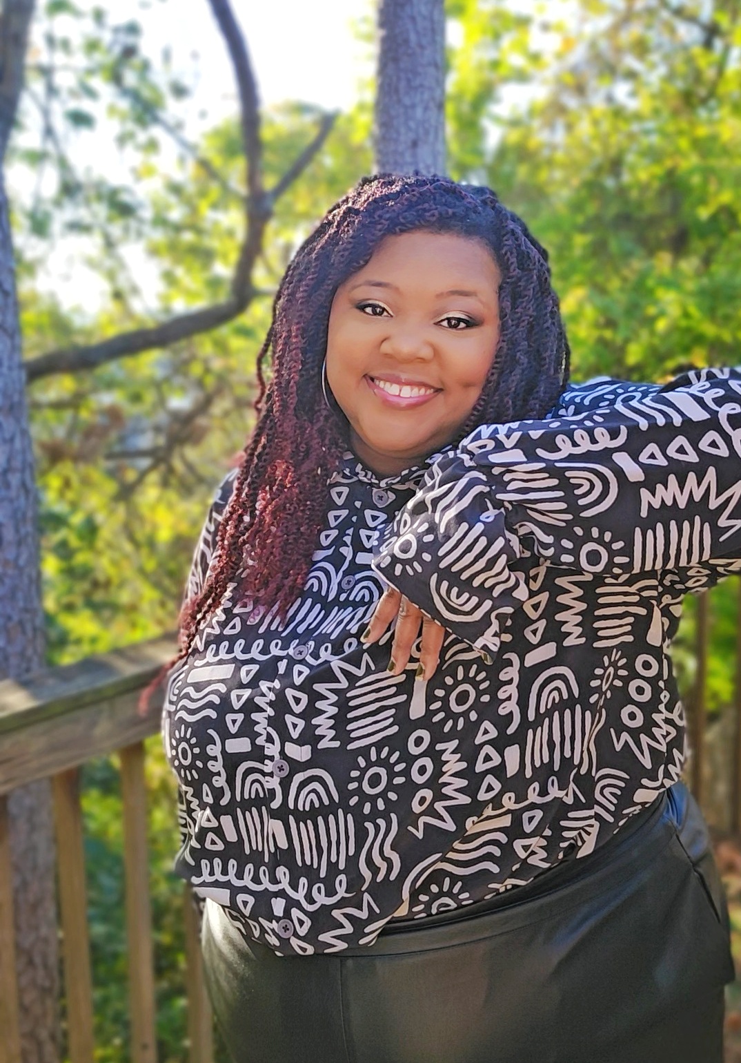 This Silk Crepe De Chine is a luxurious lightweight fabric made from 100% silk. It may seem like an odd autumn fabric choice, but it’s perfect for layering and holds its shape well. This is so important when you’re in and out of coats and jackets all day – you need a fabric that can look fresh and wrinkle-free throughout the day. The design on this printed on demand fabric is called Expressive Whimsy. It’s a Minerva exclusive design that’s super fun and reminds me of designs I’ve seen on African mudcloth. Since it’s a silk, make sure to use extra sharp, new needles. If you’re sewing buttonholes like me, invest in some fray check. It will keep your buttonholes from fraying with continued use.