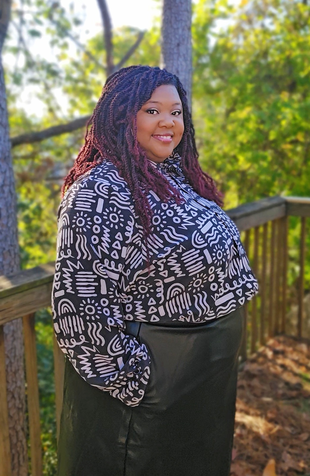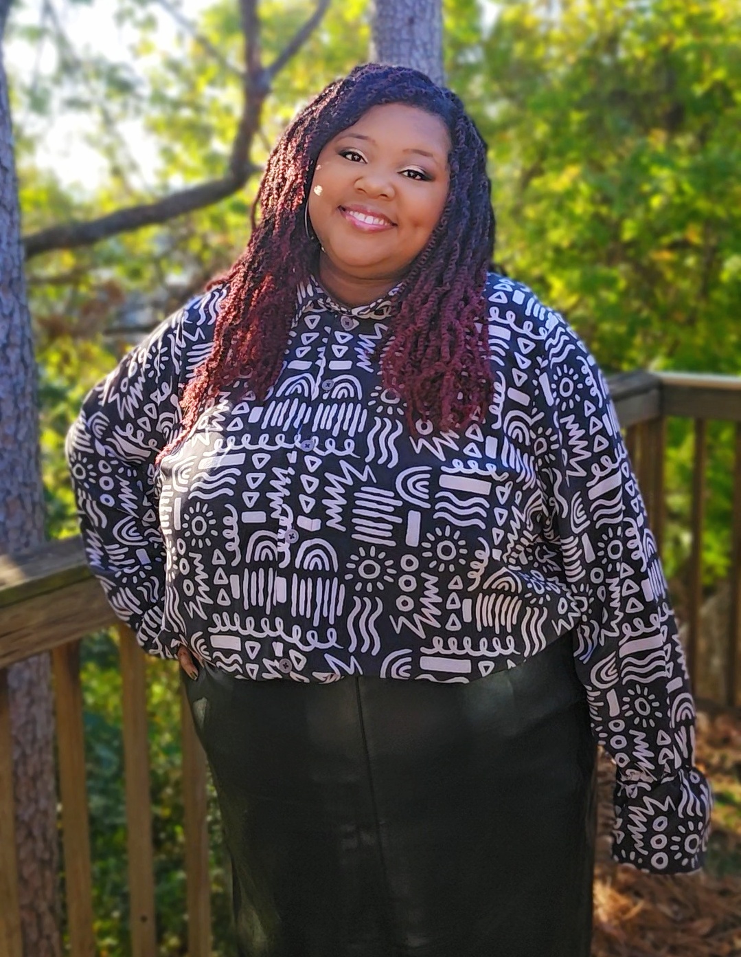 Am I the only one still using Pinterest? I’m constantly looking at Pinterest for fashion inspiration and travel planning help (less than 90 days until Thailand!), and once you get rid of all the annoying AI posts, it can be a really great resource. While perusing recently, I came across a beautifully sheer Georgette blouse with ruffled sleeves. It was such a fun twist on your basic button up blouse – I had to make one. Lately, my go-to pattern for button-up tops has been the Butano Button-up from Friday Pattern Company. It’s a quick sew with a loose fit, so it’s perfect for hacking. Instead of using a basic Georgette, I made a serious upgrade and used Silk Crepe De Chine fabric from Minerva for this blouse. The end result is chic but funky, and it looks great with jeans or the faux leather pencil skirt I’m wearing.